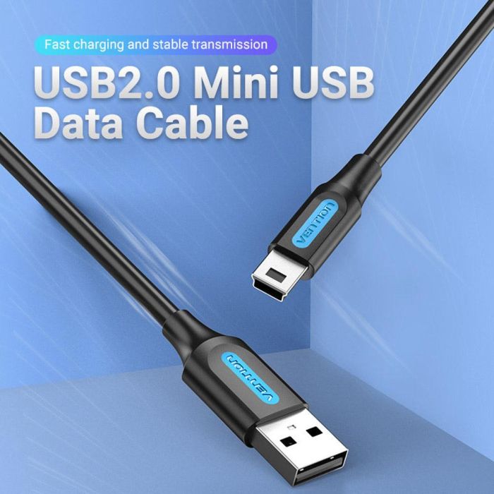 It facilitates efficient charging and data transfer for devices equipped with a Mini-B port, with a length suitable for tight spaces. Vention ensures file transfer speeds of up to 480 Mbps with a 2A charging current and a durable PVC design that withstands daily use and protects internal wires from damage.