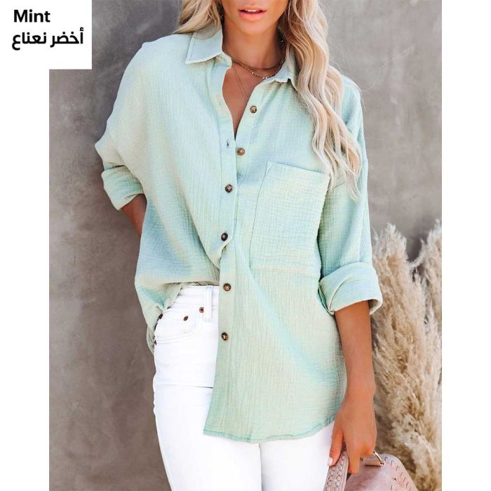 This elegant cotton and linen blouse with a V-neck for women is crafted from the finest cotton and linen to provide comfort and softness all day long. Its modern and stylish design makes it the perfect choice for a standout look on any occasion. It features buttons that add a touch of elegance and practicality to suit all tastes, ensuring you a chic and comfortable appearance at all times.