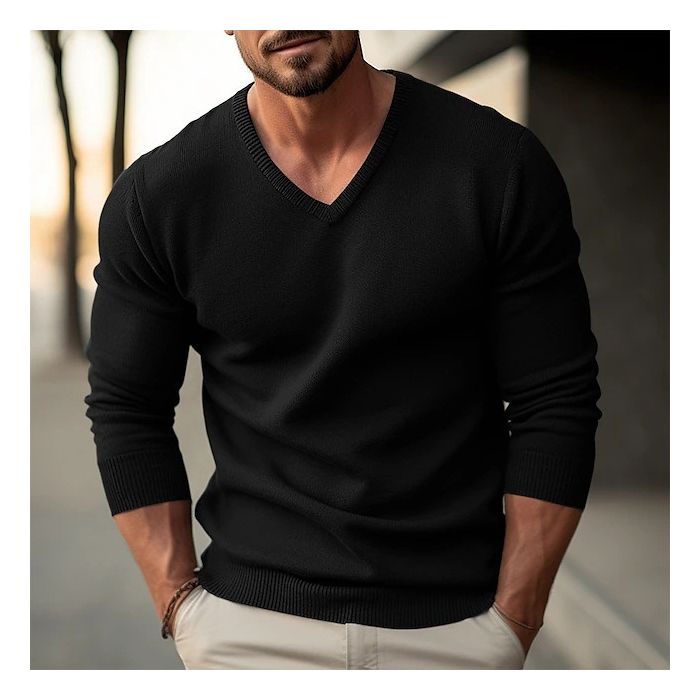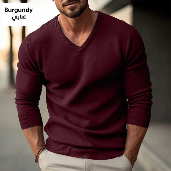 This V Neck Knit Sweater for Men made from soft knitted material that offers comfort and elegance, classic V neck design, balanced fit suitable for daily and smart casual looks