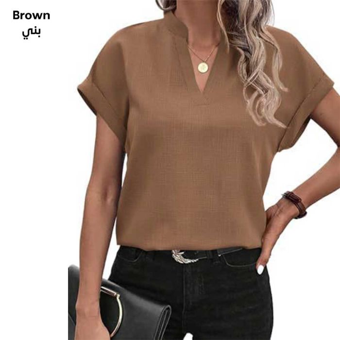 This elegant linen blouse with V-neck for women is crafted from the finest linen to provide you with comfort and freshness all day long. Its simple and stylish design makes it the perfect choice for a distinctive summer look. It is lightweight and easy to carry, making it ideal for all occasions, with a guarantee of high-quality stitching and meticulous details that add a touch of elegance and distinction to your wardrobe.