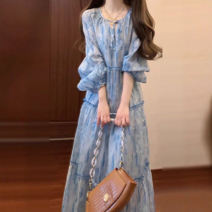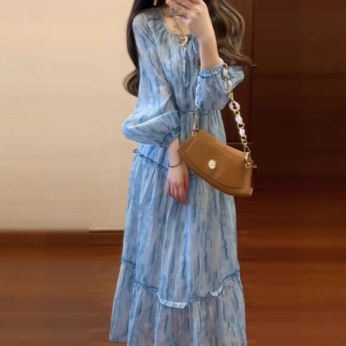 - V-Neck Long-Sleeve Loose Dress for Women