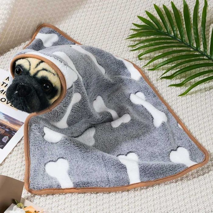 This Bone Pattern Velvet Blanket Made from Warm Velvet, This Blanket Is Perfect for Dogs and Features a Stylish Bone Pattern. It Provides a Thick Layer of Warmth and Softness for Maximum Comfort