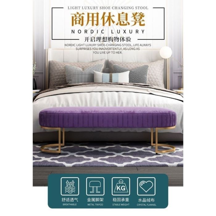 - Velvet Entry Bench with Metal Base