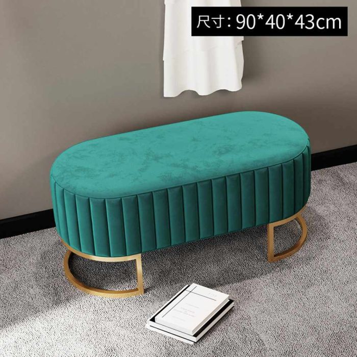 This velvet makeup Bench with metal base is made from carefully selected materials, offering comfortable seating and an elegant touch, refined design with good stability, ideal for modern bedrooms and makeup corners