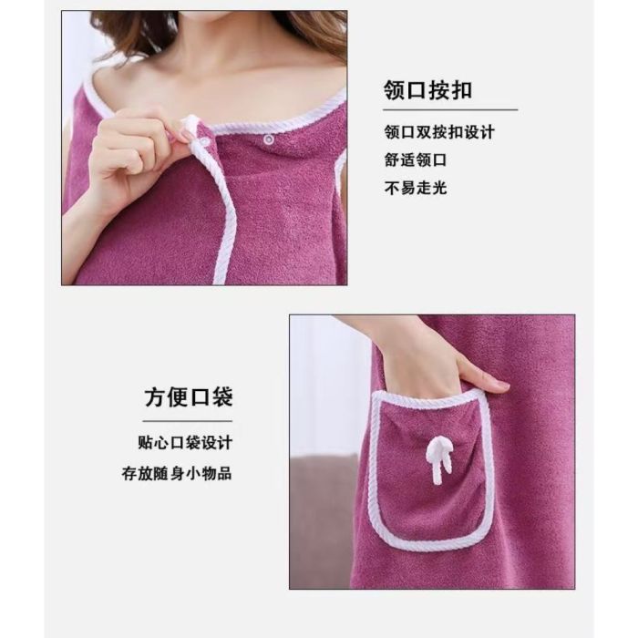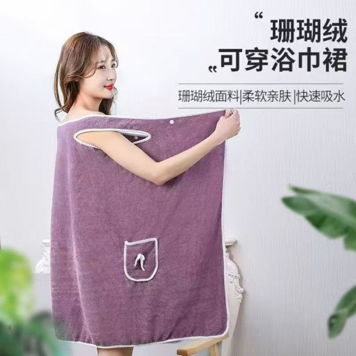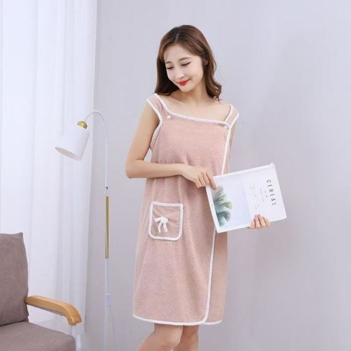This Velvet Quick-Dry Bath Robe for Women made from soft coral velvet, offers high water absorption with a warm and cozy feel, elegant strap design wraps securely around the body, ideal for daily use after shower