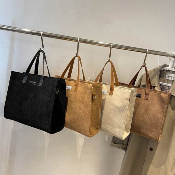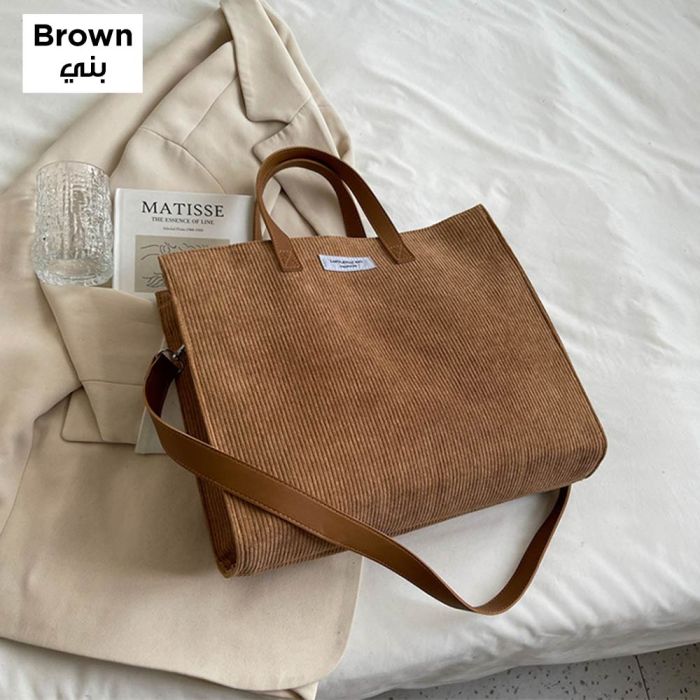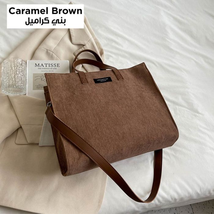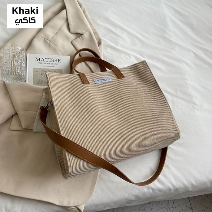 - Versatile Corduroy Tote Bag for Women - Khaki