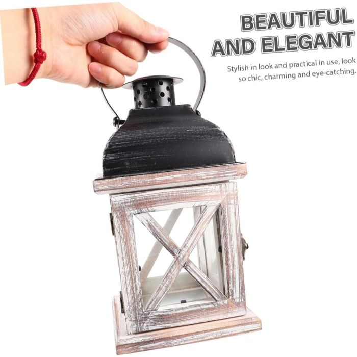 This candle lantern features a classic, romantic design combining iron, wood, and glass to give your home decor an elegant and warm touch. Ideal for use on tables or hanging on the wall, it creates a cozy and distinctive atmosphere for parties, weddings, or quiet evenings.