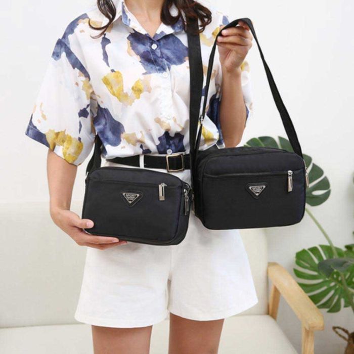- Water Resistant Oxford Cloth Crossbody Bag - Black