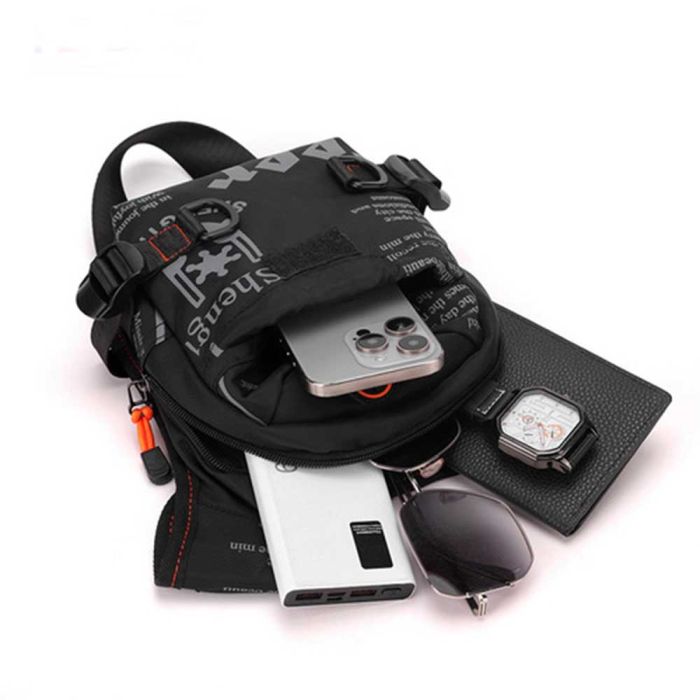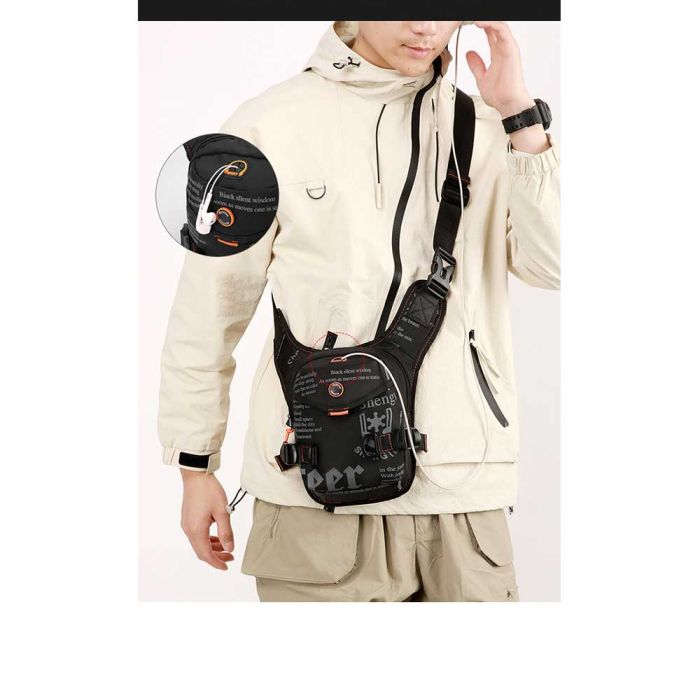 This Oxford shoulder bag is crafted for style and function, made of high-density fabric with waterproof protection, it features multiple compartments for phone, wallet, keys, and power bank, the integrated earphone port adds convenience on the go, while the adjustable straps and elegant finish provide comfort, security, and lasting quality
