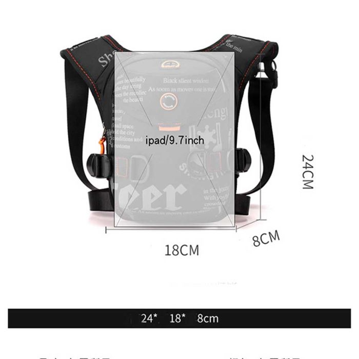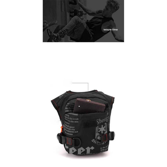 - Comfortable shoulder design, wearable as Crossbody or leg bag