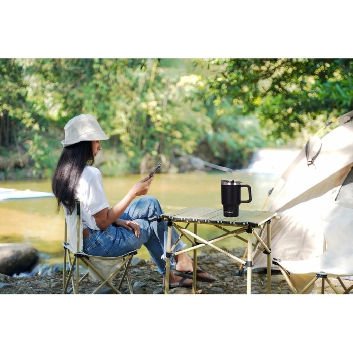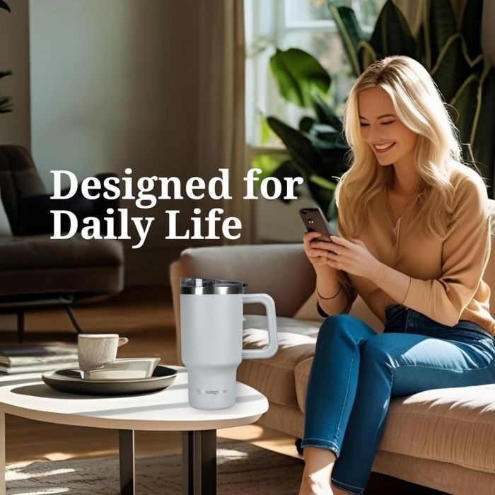 This heavy-duty mug with a stylish design, made from high-quality stainless steel with a thermal insulation system and double-wall vacuum insulation, meaning your drinks will stay at the perfect temperature for up to 9 hours for hot drinks and 9 hours for cold drinks. It's also leak-proof, so you don't have to worry about spills.