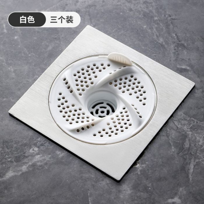 This Whirlpool Anti-Clog Floor Drain Cover 3 Pieces made of durable PP plastic, whirlpool design with fine openings collects hair and debris, equipped with a top handle for easy removal and maintains smooth water flow