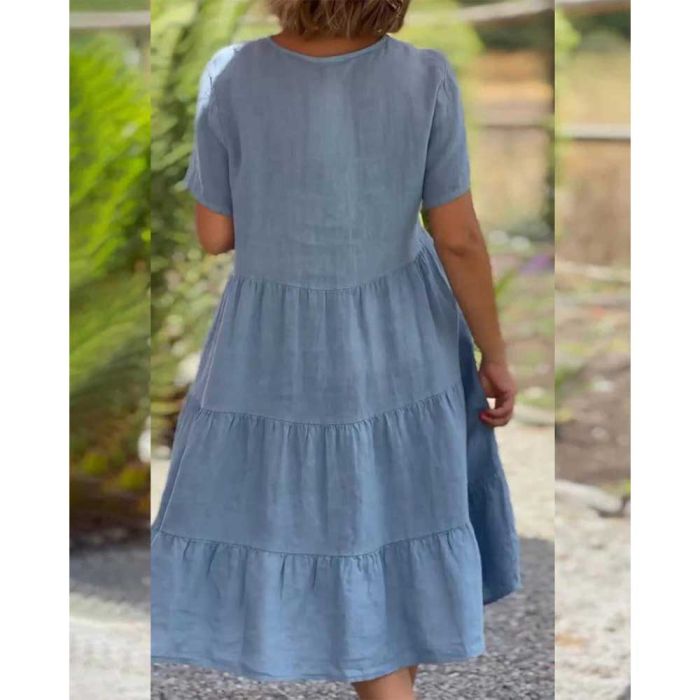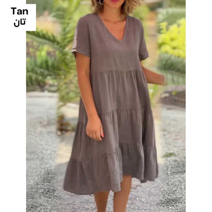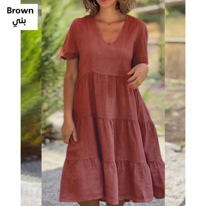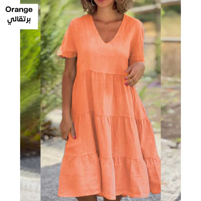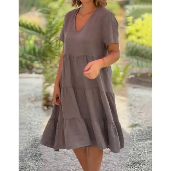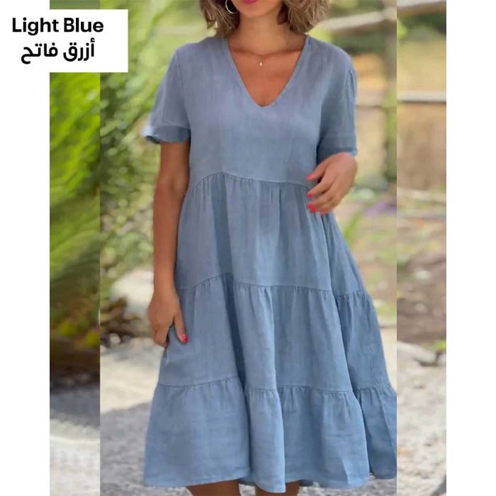 This Women's V-neck Loose-fitting Short Dress Is Crafted from a Lightweight, Flowing Fabric. It Features a Loose V-neck Design for a Flattering, Fresh Look. Its Loose Fit Ensures Maximum Comfort in the Summer, Making It Perfect for Casual Summer Looks.