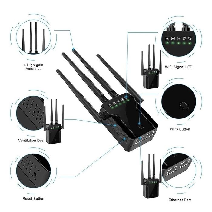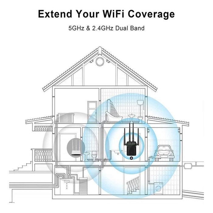 - WiFi Signal Extender 1200Mbps Dual Band 2.4 & 5GHz