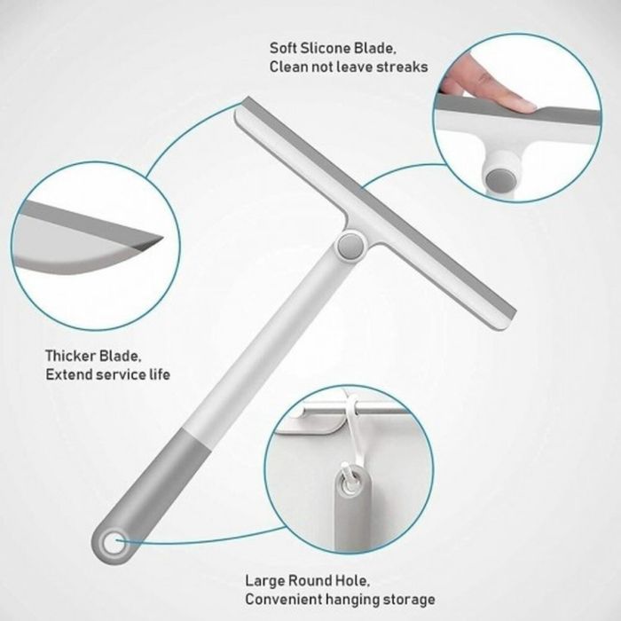 Effortlessly remove paint, stickers, tape, and grime from glass surfaces without leaving scratches. The soft silicone blade cleans smoothly without streaks, while the thicker blade design extends its service life for longer use. An ergonomic handle provides a secure, comfortable grip for better control. The large round hole makes it easy to hang and store when not in use. This versatile squeegee is perfect for wiping windows, car windshields, mirrors, tiles, shower surfaces, and more.