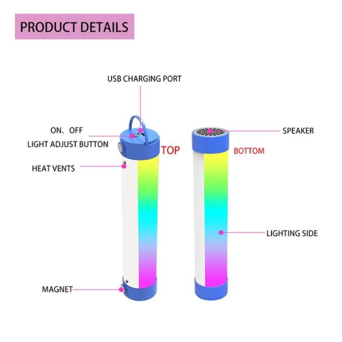 Enjoy 360° surround sound with dynamic RGB lighting that adds a modern and relaxing atmosphere anywhere. Wireless Bluetooth 5.0 connectivity lets you seamlessly stream music from all your devices. The rechargeable battery provides long hours of playback, while the magnetic design allows for easy attachment to metal surfaces for enhanced everyday use.