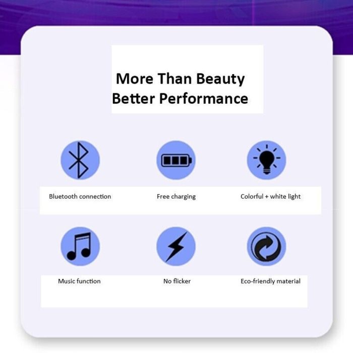 - Supports RGB colors with soft white light to create multiple atmospheres