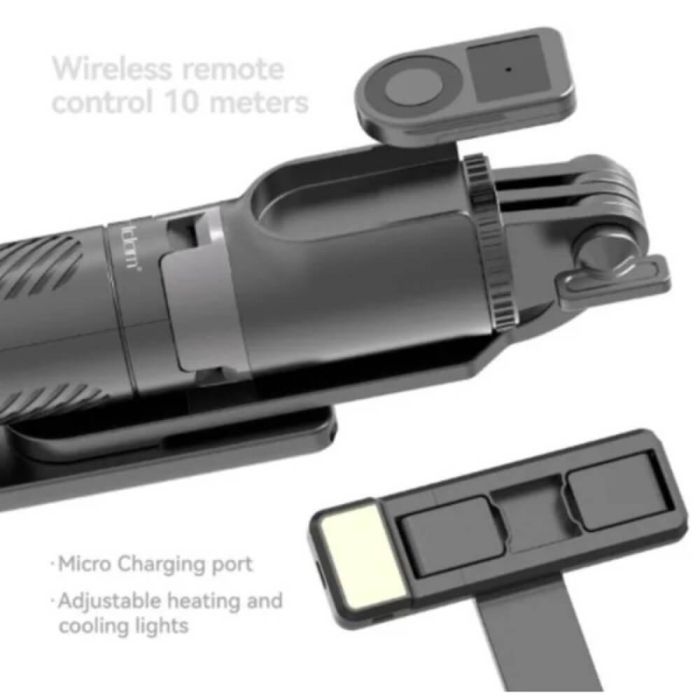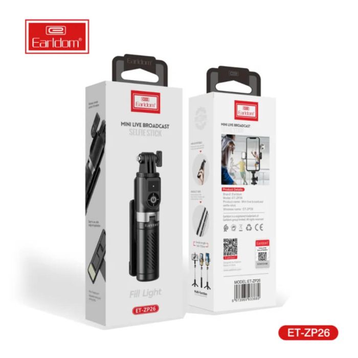 Experience professional photography with the Earldom Selfie Stick, combining multifunctionality with a sleek design. Featuring adjustable LED lighting, you can capture clear and beautiful photos and videos in various lighting conditions. The extendable length from 16 cm to 77.5 cm offers flexibility in shooting, while the 360° rotation allows capturing images from all angles. With Bluetooth remote control, you can operate your camera remotely to capture special moments with ease. Its compact design with an integrated tripod base ensures added stability during shooting. Compatible with iPhone devices, Android devices, GoPro cameras, and small cameras, making it perfect for travel, live streaming, and everyday photography. Easy to use with the Plug & Play feature, no additional apps required.