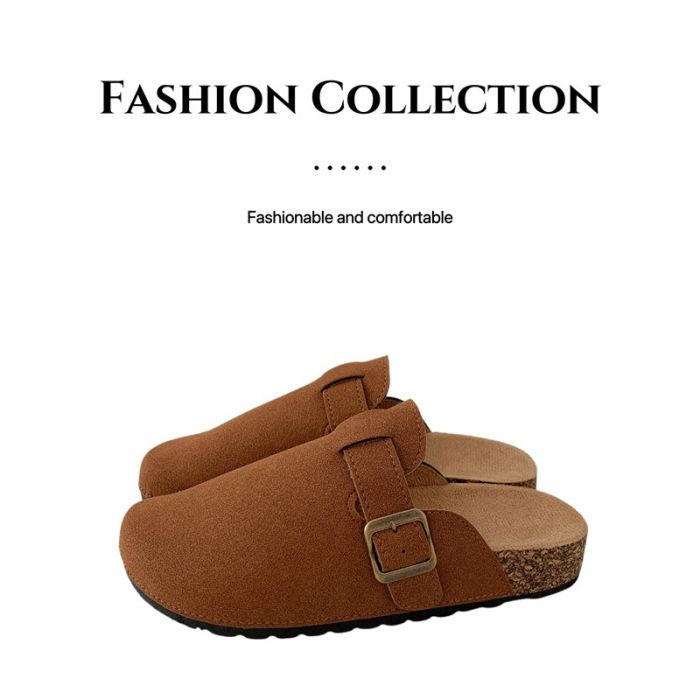 This women's shoe is the perfect addition to the fall and winter season. It combines the comfortable feel of Birkenstock with a closed design for foot protection. It features high-quality matte leather and a thick, non-slip sole, making it a stylish and practical choice for indoor and outdoor wear.Today's Deal is Women's Autumn and Winter Closed-Toe Mules