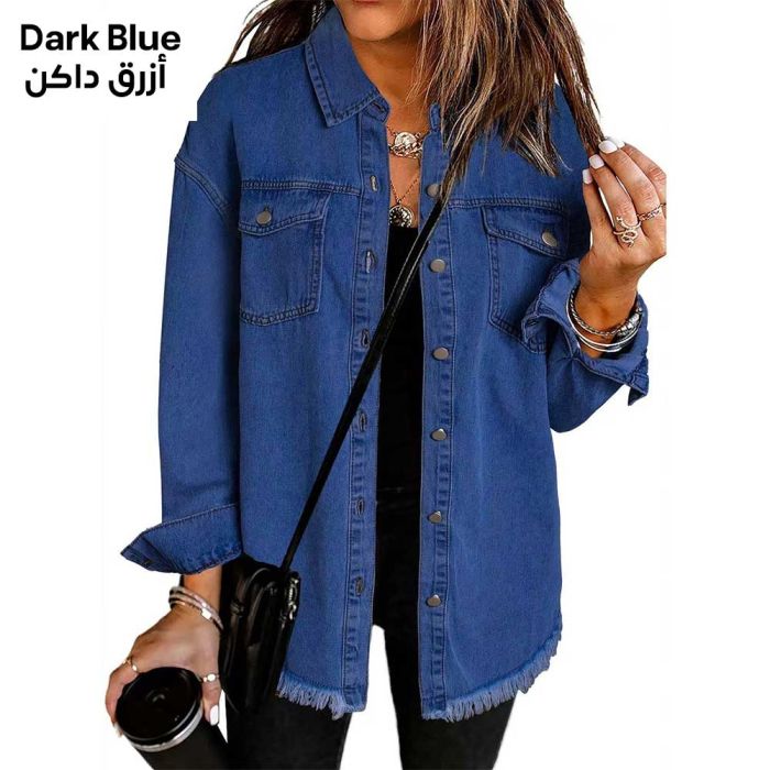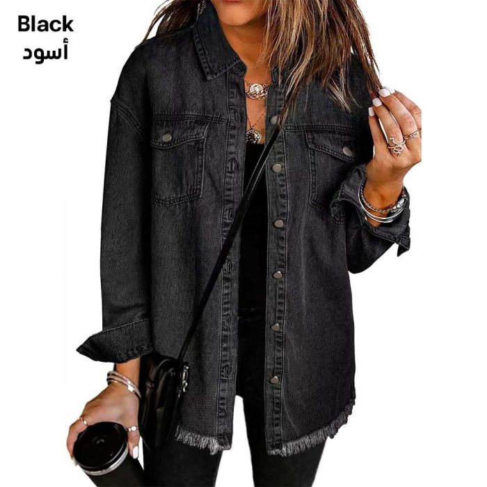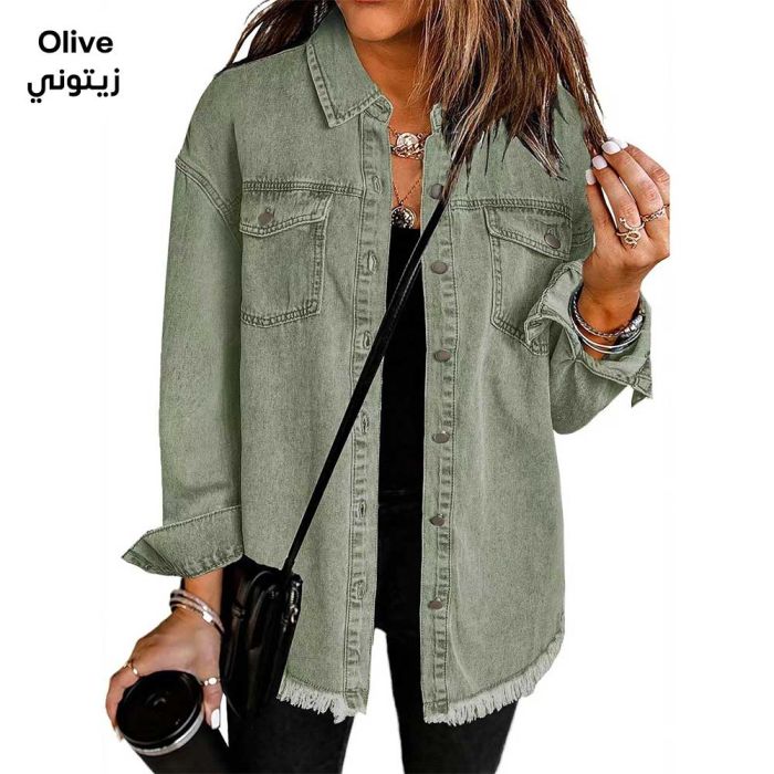 A stylish women's denim jacket with a modern design suitable for autumn and winter, featuring a comfortable fit and a trimmed hem for a unique and eye-catching look.Today's Deal is Women’s Denim Shirt Jacket Street Style