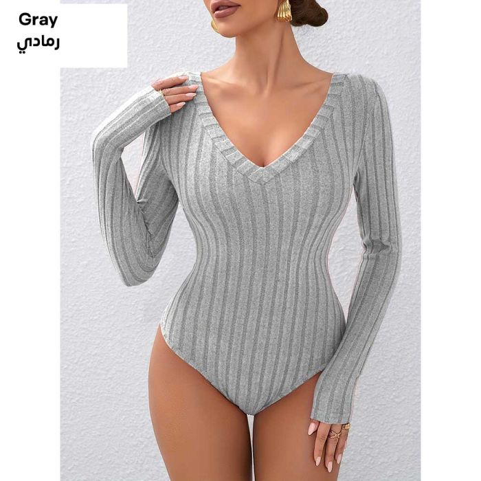 - Women's Elegant Women's Fitted V-Neck Bodysuit