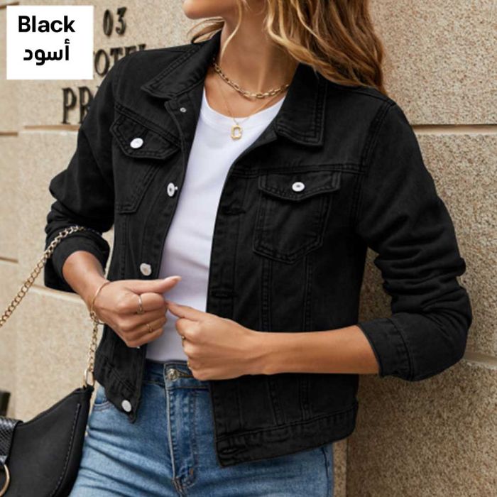 - Women’s Fall and Winter Denim Jacket Long Sleeve Top - Small - Black