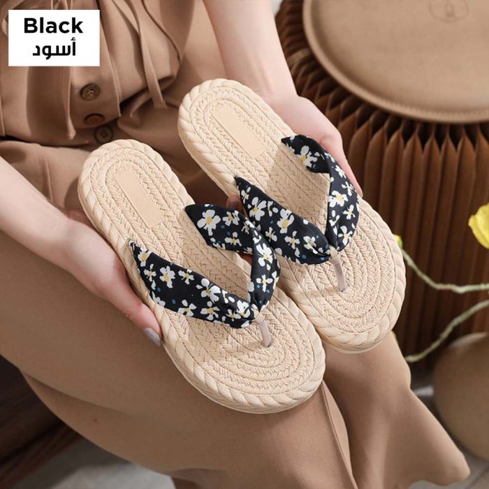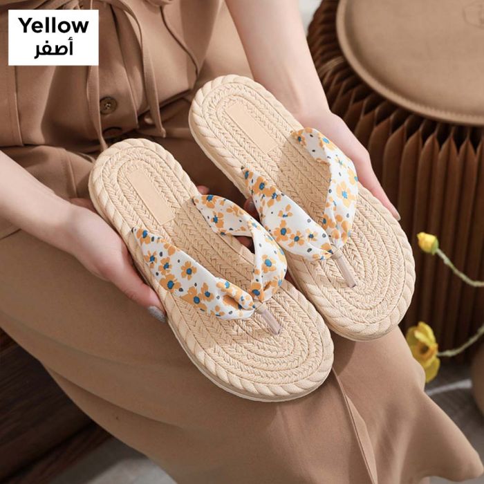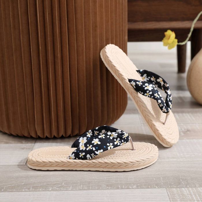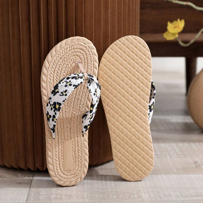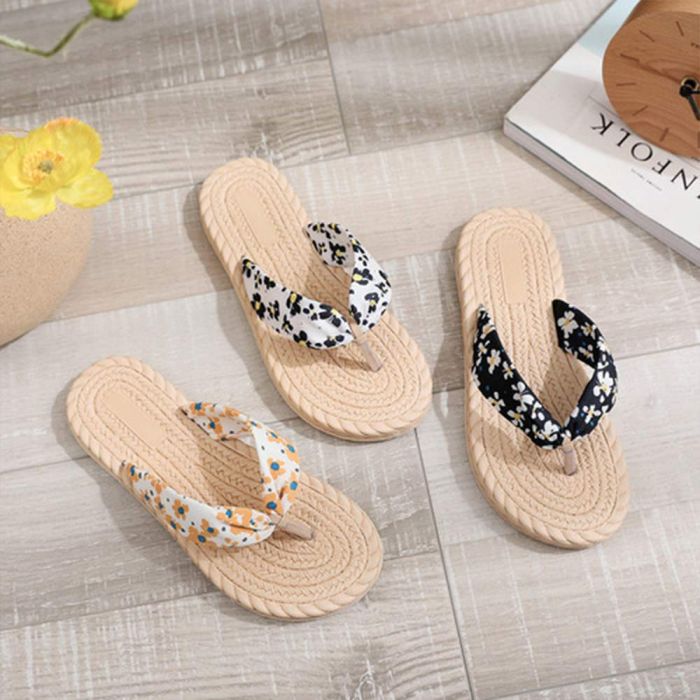 - Women's Flower Flip-Flops Imitation Straw Beach Sandals