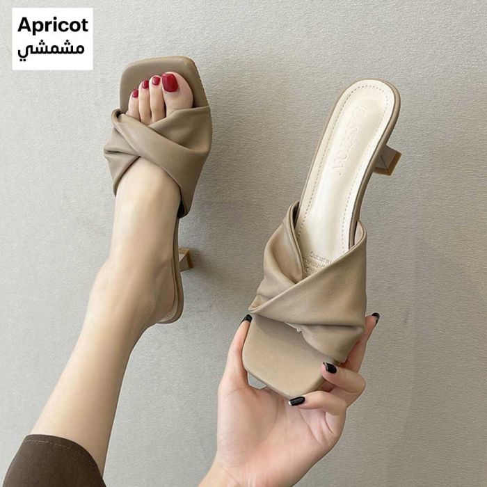 - Women's French Style Cat Eye High Heel Mules - 35Apricot