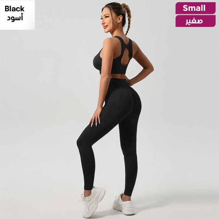 - Women’s Knitted Yoga Outfit Sports Vest and High Waisted Leggings - Small - Black