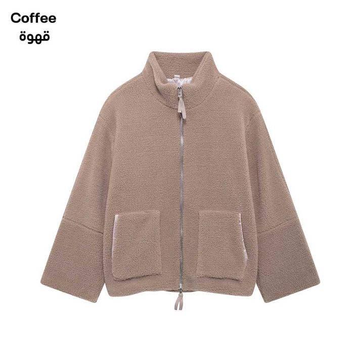 - Women’s Lamb Fur Turtleneck Woolen Jacket - Medium - Coffee