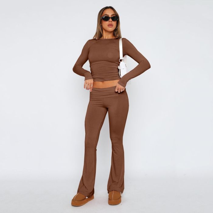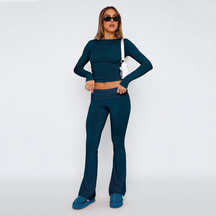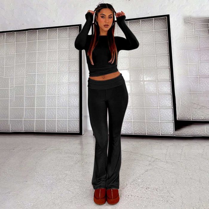 This Women's Wide-leg Set Is Crafted from Durable, Stretchy Fabric for All-day Comfort While Remaining Stylish. Featuring Wide-leg Pants for a Bold, Modern, and Ultra-comfortable Look, This Set Features a High-waisted Design That Beautifully Defines Your Waistline. It Can Be Easily Styled for a Variety of Looks, Whether at Home or at Casual Gatherings.