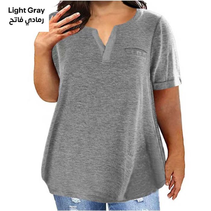 - Women’s Loose Short Sleeve T-Shirt with Pocket - Large - Light Grey