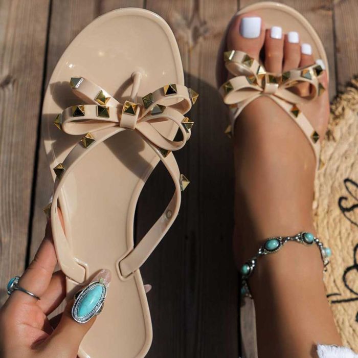 This Women's Outdoor Slippers with a Stylish Design Featuring Attractive Metal Stud Details on the Ends, Adding a Modern and Bold Touch. Perfect for Wearing at the Beach or During Summer Vacations, They Are Lightweight and Provide Maximum Comfort for a Striking Summer Look.