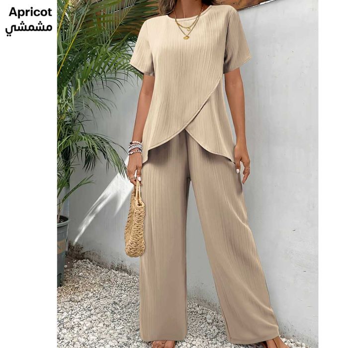 This Women's Short Sleeve Set is Made of a Comfortable and Flexible Fabric Blend, Featuring a Casual Loose Fit and an Irregular Cut for a Modern Touch, Flexible and Supportive for Everyday Activities, Comfortable and Versatile, Maintains Its Quality and Loose Shape, a Perfect Addition to Your Casual Wardrobe.