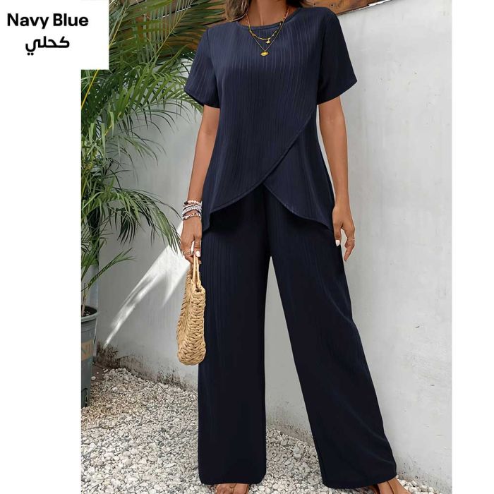 - Women's Pants and Short-sleeved Blouse Set