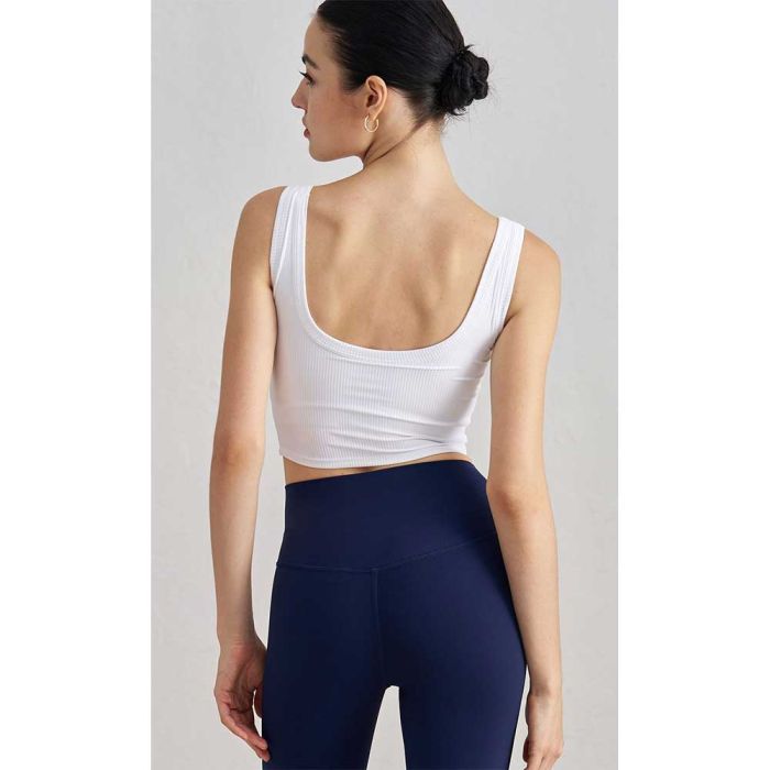 This Ribbed Wire-free Sports Bra Is Made from a Smart, Flexible Ribbed Fabric. This Sports Bra Is Specially Designed to Provide Light to Moderate Support During Yoga and Light Exercise. It Features a Wire-free Design with Semi-fixed Cups That Provide a Flattering and Comfortable Shape. the Open Back and Crew Neck Give It a Modern Look That Allows It to Be Worn as a Stylish Outerwear Piece in the Summer. the Ribbed Fabric Not Only Ensures a Stylish Look but Is Also Extremely Breathable, Keeping You Dry and Comfortable. Thanks to Its Quality Stitching, It Maintains Its Quality and Flexibility. It Is the Perfect Piece That Combines Sportswear Support, Modern Style, and Everyday Comfort.