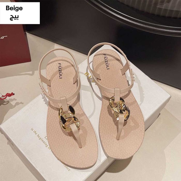 - Women's Roman Style Open-Toe Flat Sandals with Toe Clip - 36-37 - Beige