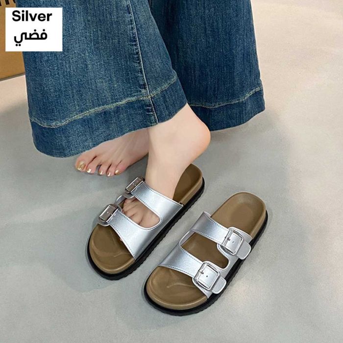 - Women's Summer Fashion Double Buckle Platform Slides - 36-37Silver