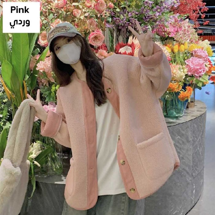 - Women’s Thick Lamb Wool Loose Mid-Length Top - Medium - Pink