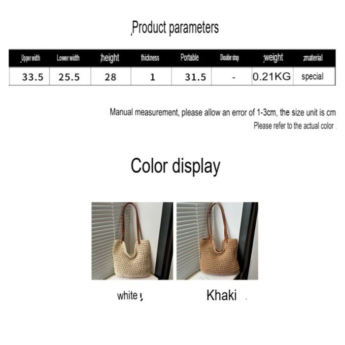This women's shoulder bag is a modern accessory featuring a woven mesh design and made of cotton. It offers ample capacity with a chic, casual style. It serves as a convenient and perfect bag for shopping, college, or everyday errands. Its simple yet distinctive appearance adds a personal touch to your look.Today's Deal is Women's Trendy Woven Cotton Large Capacity Tote Bag