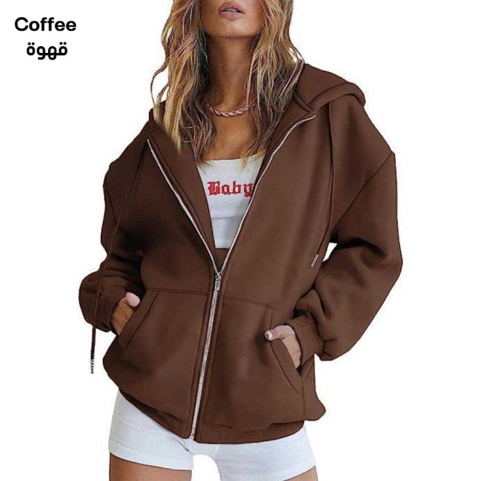 This Women's Zip-Up Hooded Sweatshirt made from soft polyester material that offers everyday comfort, featuring a modern design with stylish pockets, relaxed fit easy to style, perfect for casual looks and maintains its quality