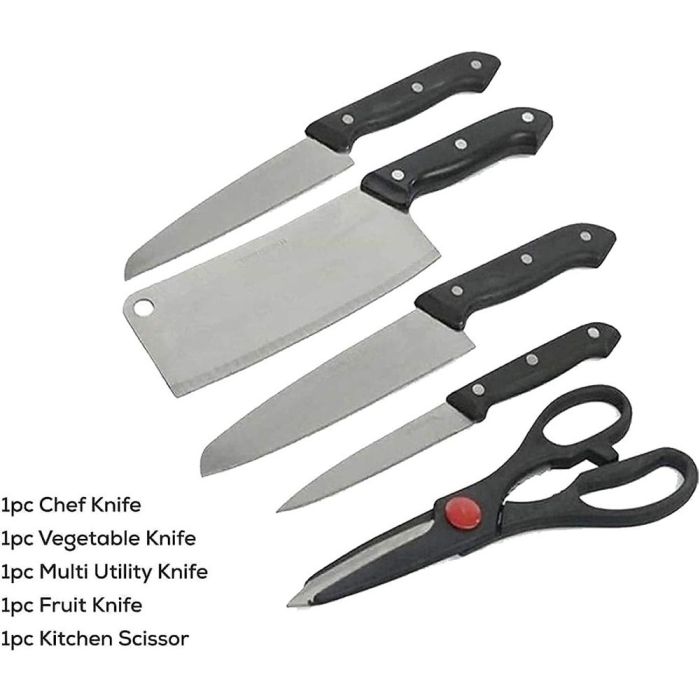 The wooden chopping board with 4 knives and scissors provides a complete set for easy food preparation. It helps you chop vegetables and meat precisely with its versatile tools, and gives you better organization on your kitchen counter while preparing daily meals.