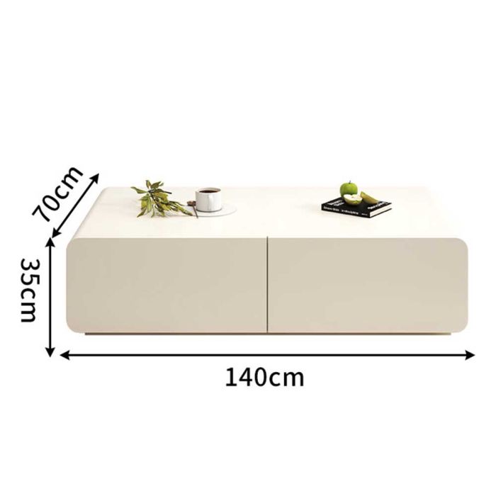 Wooden multi-purpose table with 4 drawers made from carefully selected materials, offering smart space organization, featuring two front drawers and two rear drawers, delivering flexible storage and an elegant touch suitable for various areas of the home