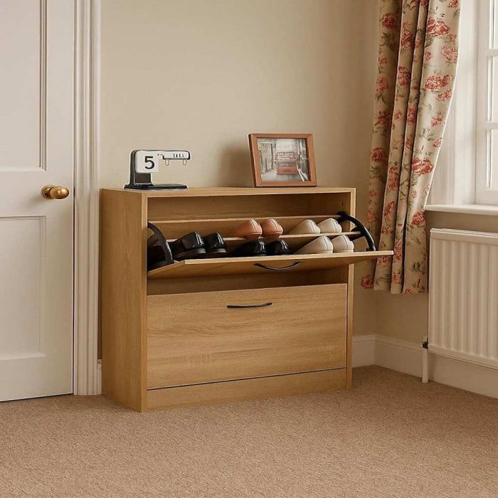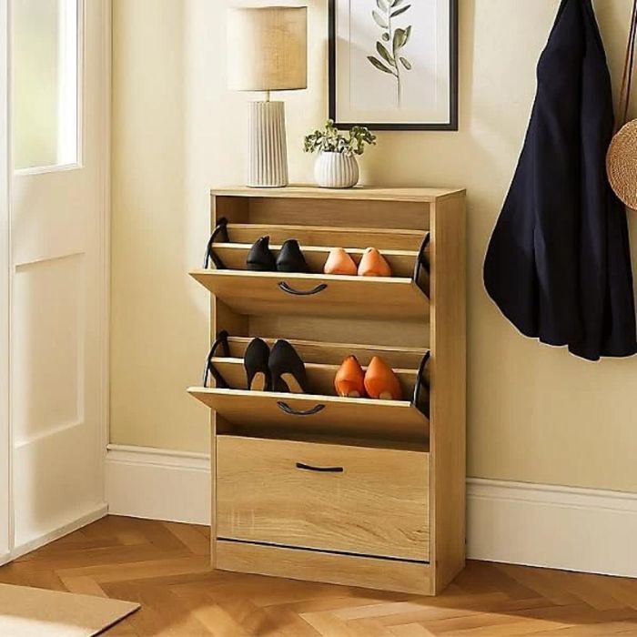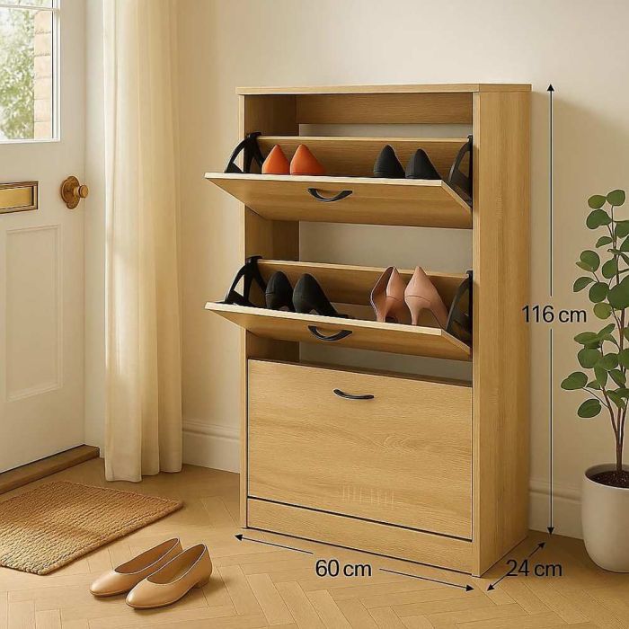 Say goodbye to clutter with practical wooden shoe organizer in modern design that adds a stylish touch to your home and suit all decors. Made of durable MDF for long-lasting use, it features a smart pull-out drawer system that saves space and neatly conceals shoes. Ideal for entryways, bedrooms, or small apartments, it's easy to assemble and provides a practical and elegant solution for organizing your shoes