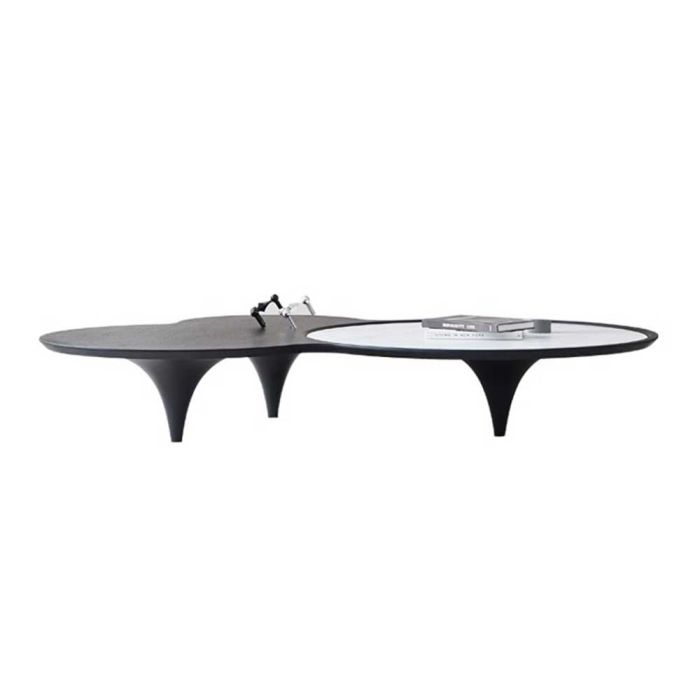 - Natural Wooden Side Table with Sintered Stone - 160 × 90 × 32 cm