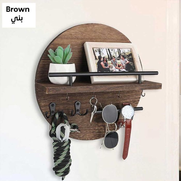 - Wooden Wall Rack Hook and Key Storage Shelf - Brown