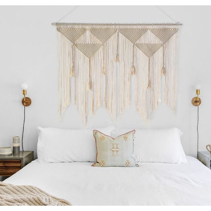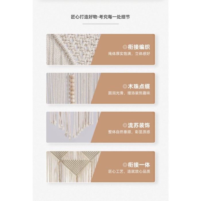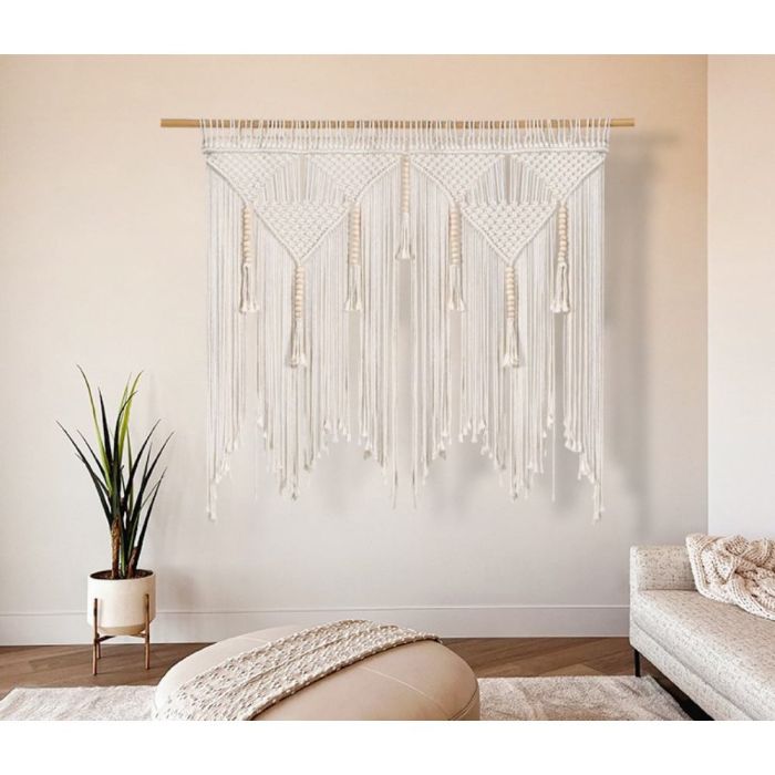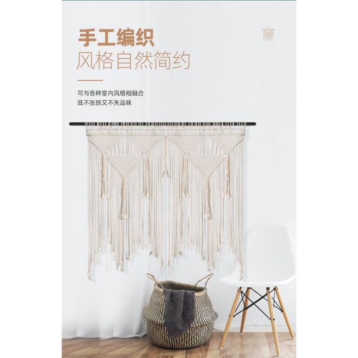 This Woven boho style wall hanging made of pure cotton with elegant macrame ropes, adds a warm natural touch to the space, suitable for living rooms and bedrooms, blends beautifully with calm and minimalist decor