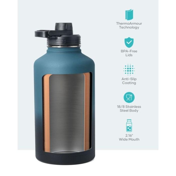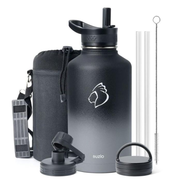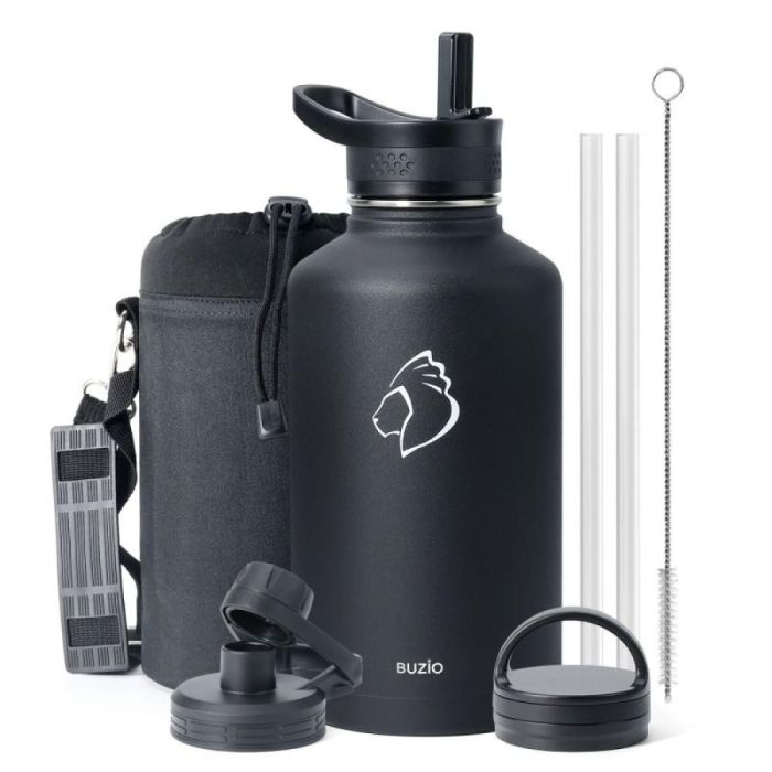 Today's Deal is Buzio Trio Series 1.9L Water Bottle with 3 Lids and Sleeve