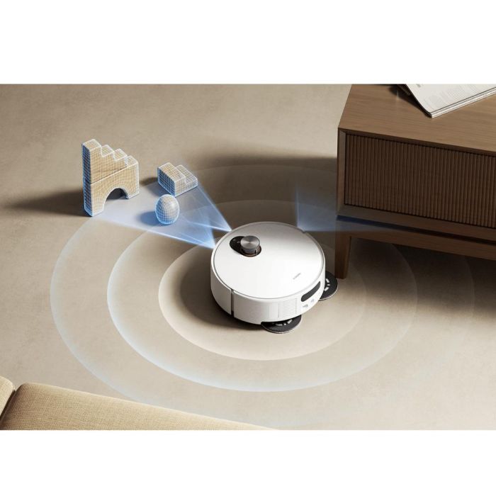 The Xiaomi 5 robot vacuum features a retractable dToF intelligent radar system that allows it to efficiently access spaces as low as 9.5 cm. It delivers powerful suction up to 20,000 Pa and has anti-tangle brushes for easy hair and dirt removal. It comes with a self-cleaning base that can wash and dry the floor mop using hot water up to 80°C, and automatically collects dust into a 2.5-liter bag that lasts up to 75 days before needing replacement. It can be controlled via the Xiaomi Home app or voice commands using Alexa and Google Assistant.