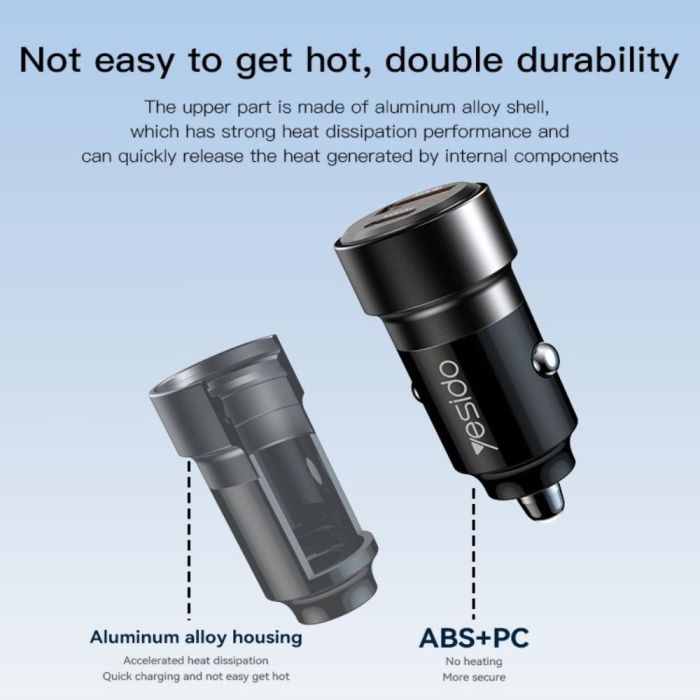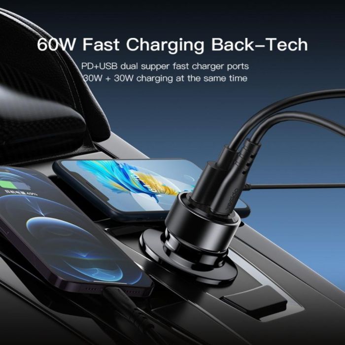 - Yesido 60W Fast Charging Car Dual Port Charger with Type-C to Lightning Cable